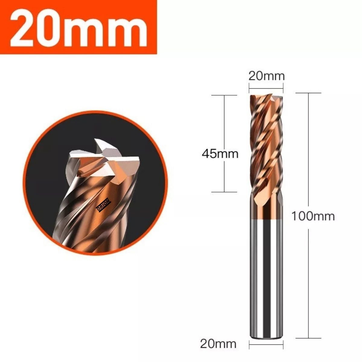 fresa topo metal duro 4 cortes 20 mmx45x100xh20 TiSiN: