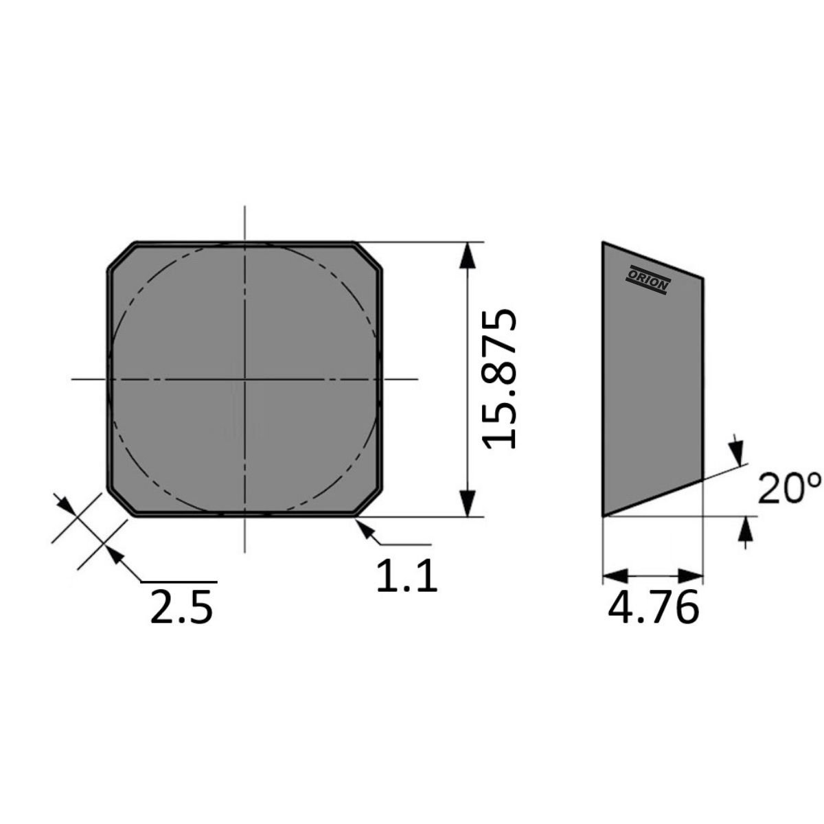 .tamanho da aresta da pastilha: 15,875 mm;