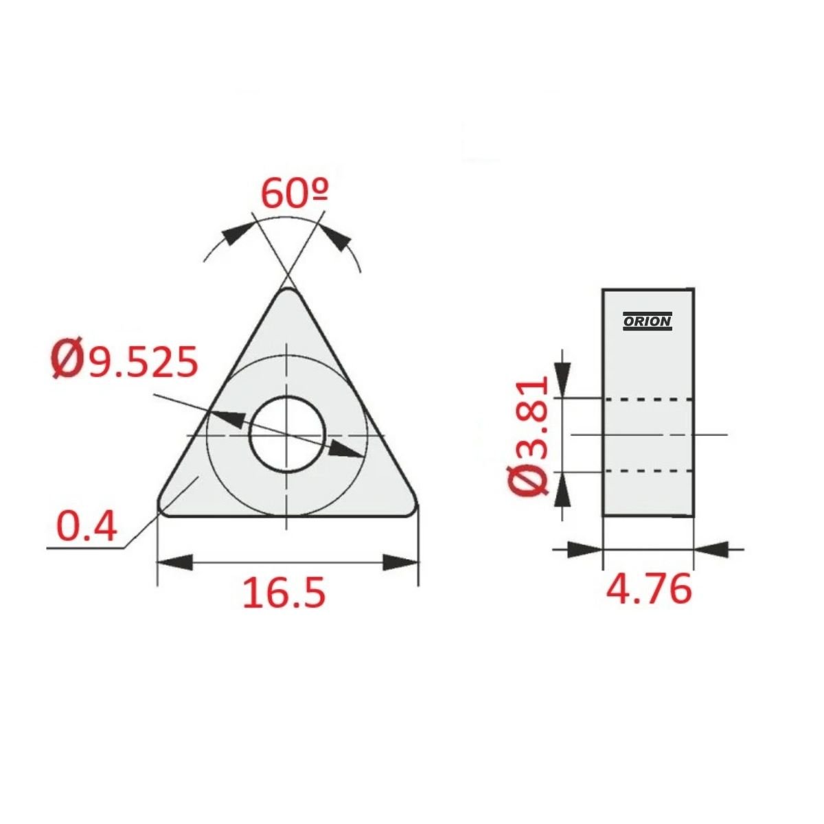 .tamanho da aresta da pastilha: 16,5 mm;