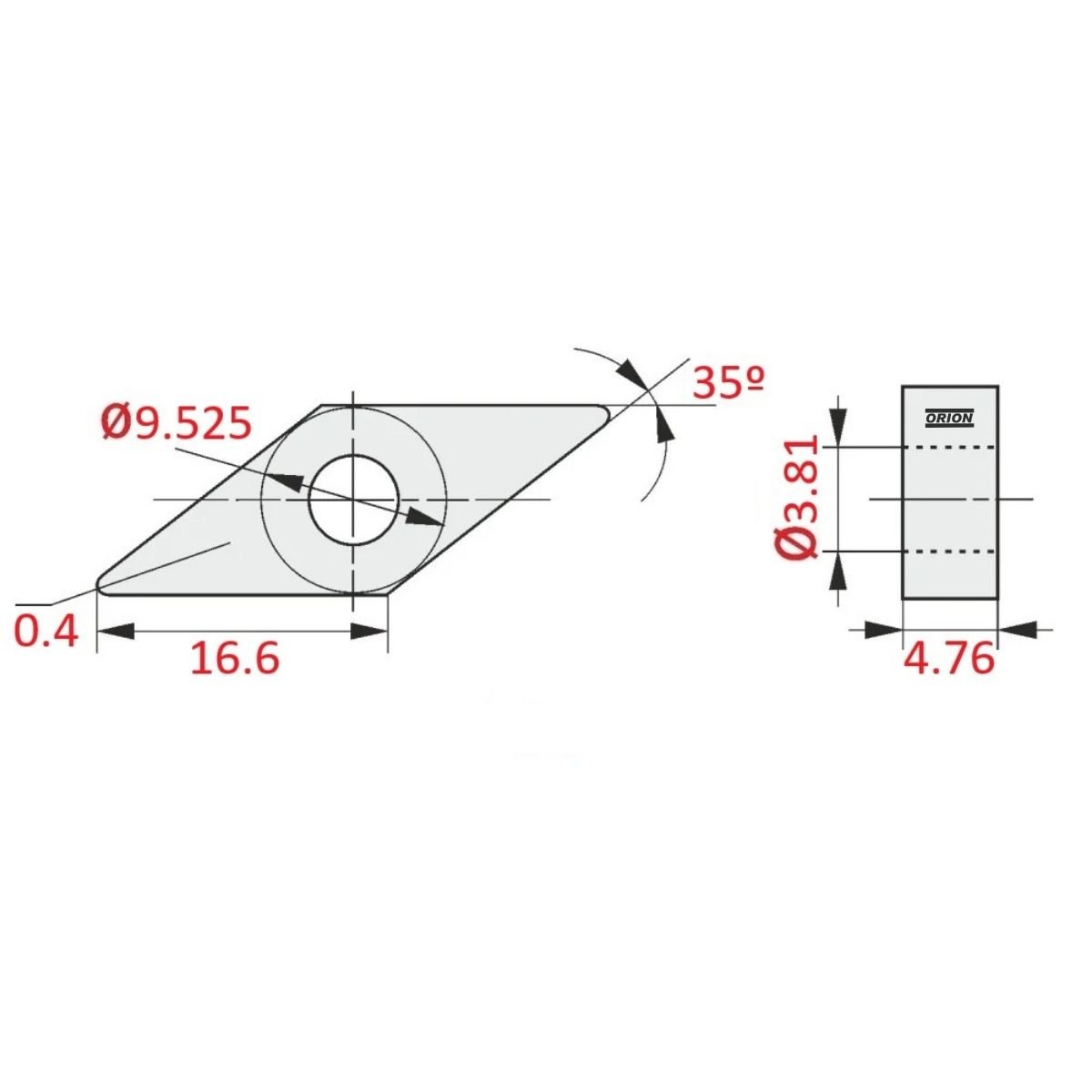 .tamanho da aresta da pastilha: 16,6 mm;