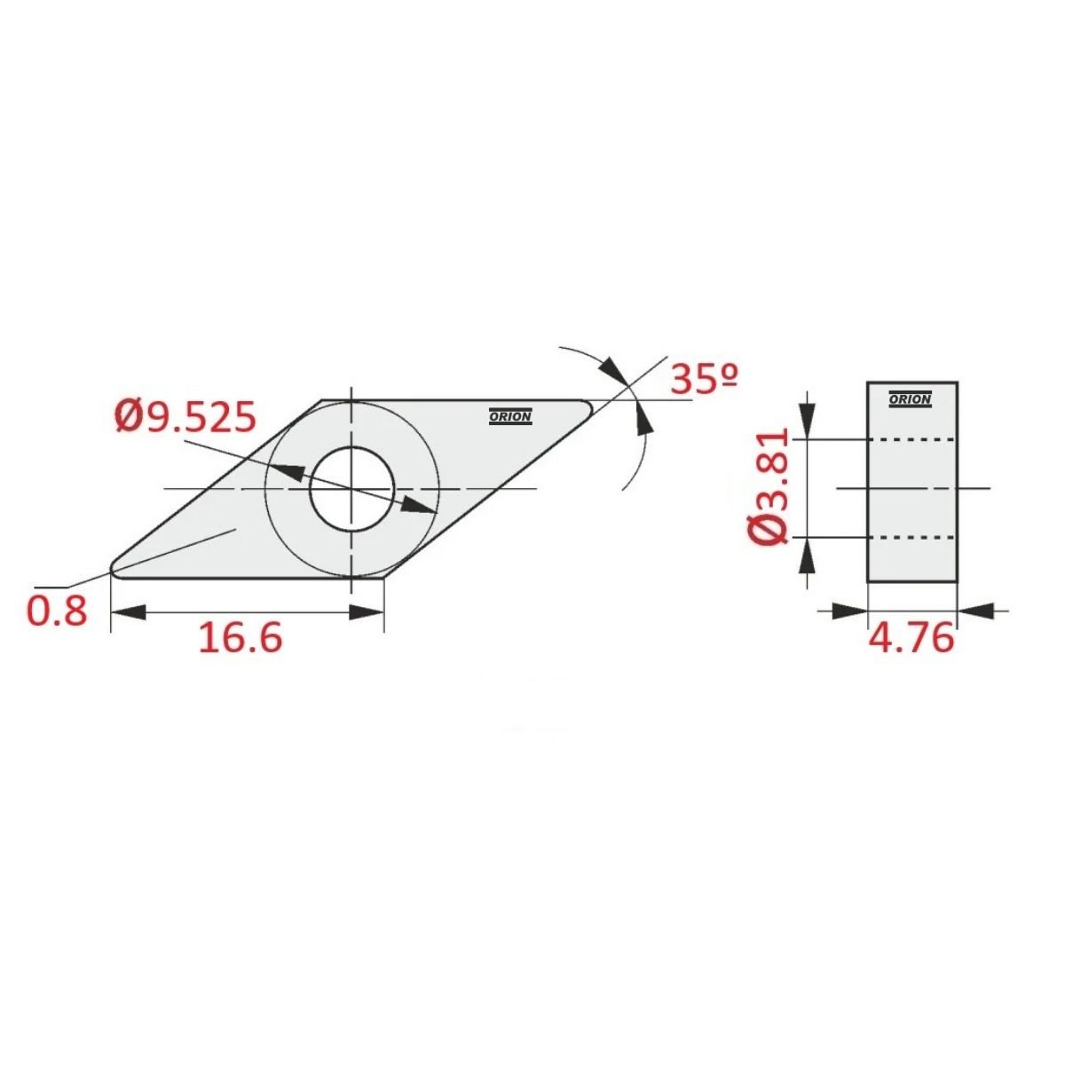 .tamanho da aresta da pastilha: 16,6 mm;