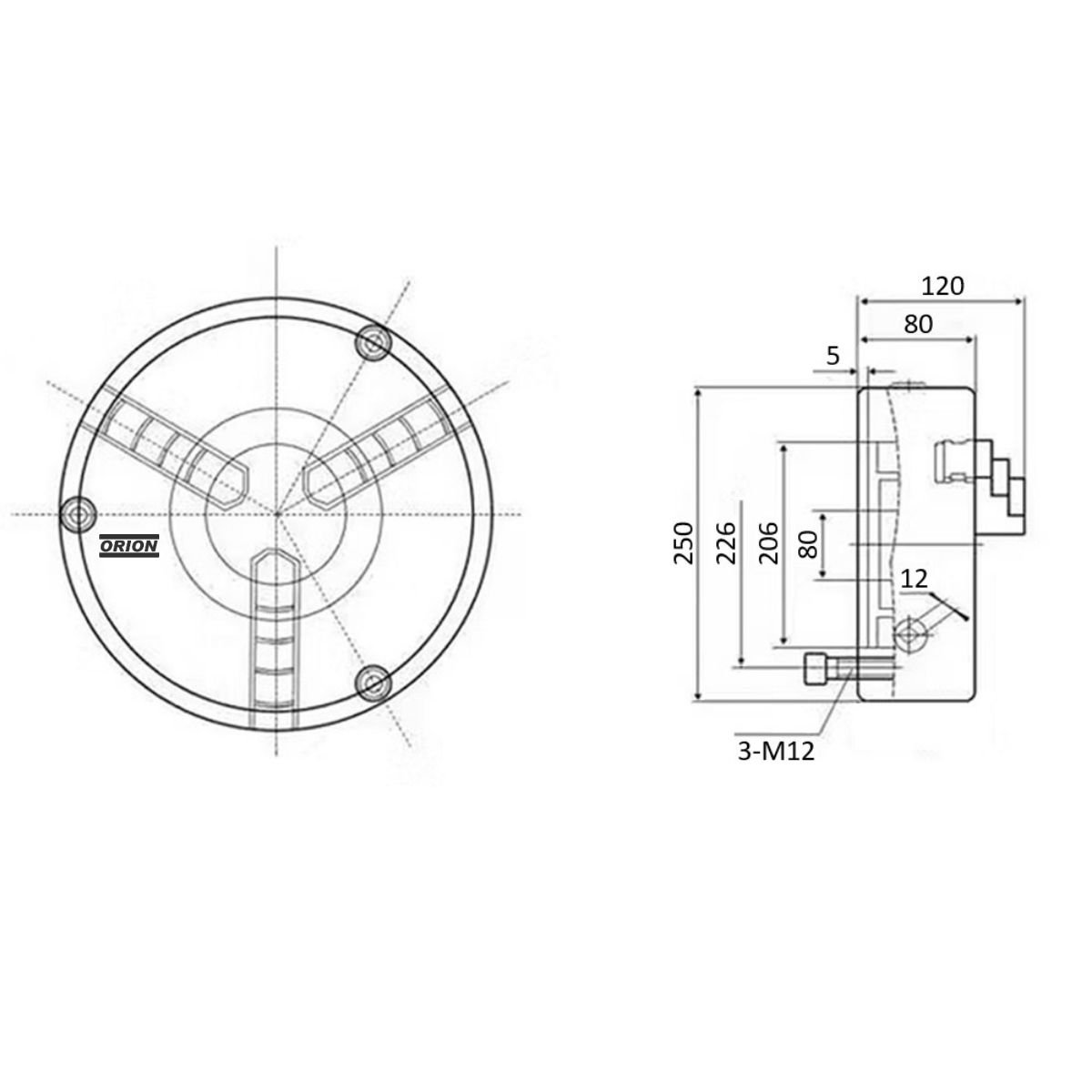 13316-placa de torno universal 3 castanhas 250 mm fixaçao frontal